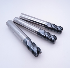 3.硬质合金立铣刀:用于加工沟槽和台阶面等,刀齿在圆周和端面上,工作时不能沿轴向进给。当立铣刀上有通过中心的端齿时,可轴向进给。